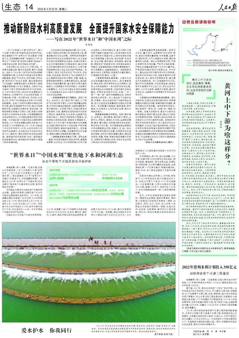 3月22日是第三十届“世界水日”,第三十五届“中国水周”的宣传活动也同时开启。联合国确定今年“世界水日”的主题是“珍惜地下水,珍视隐藏的资源”,我国纪念今年“世界水日”“中国水周”活动的主题是“推进地下水超采综合治理 复苏河湖生态环境”。